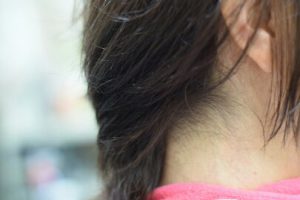 このように襟足の生えが上向きに生え、癖がかなりきつく髪が真ん中に集まってしまう。つい短くすることを諦めて仕方なく髪を伸ばしてついひとつに引き詰めて結んでしまう。でも諦めることはないんです。